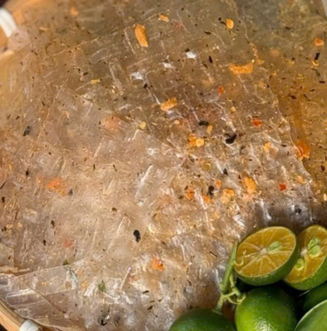Bánh tráng rong biển Hoàng Phúc được hòa quyện giữa vị mặn đặc trưng của rong biển, chút cay nồng của sa tế, vị béo thơm của tỏi phi và vị mặn ngọt hài hòa của bánh tráng.